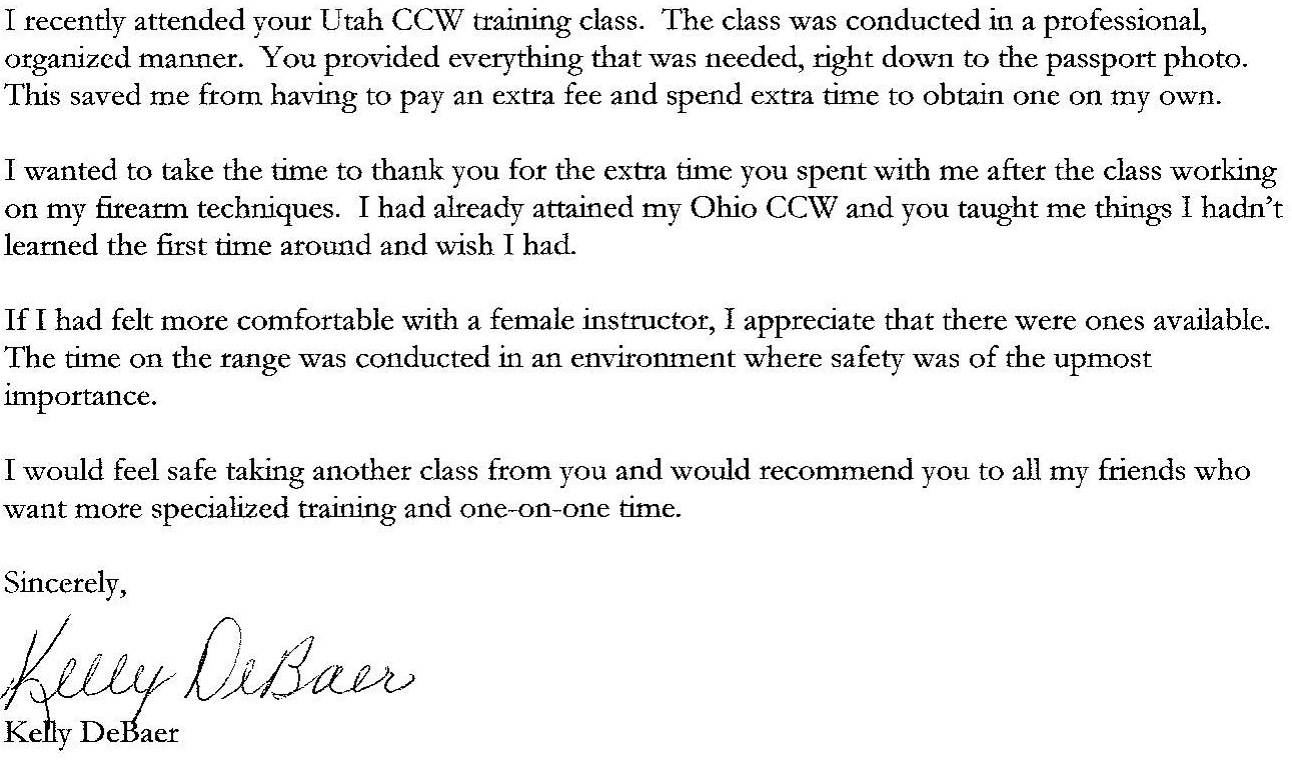 I am currently a CCW license graduate of the NRA CCW class taught by Susan Hutchinson and Mike Cindia. Prior to the